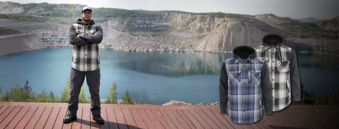 Pantalons de travail, chandails haute visibilité, chemises à manches longues haute visibilité et jeans maintenant disponibles avec notre nouvelle technologie “Stretch Fit Élastique”.