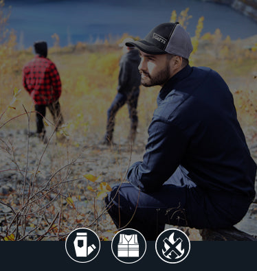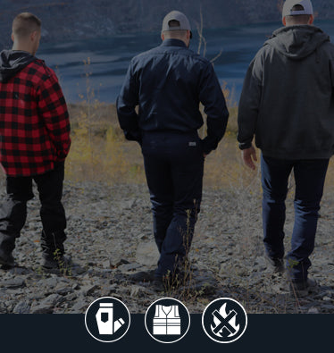 Pantalons de travail, chandails haute visibilité, chemises à manches longues haute visibilité et jeans maintenant disponibles avec notre nouvelle technologie “Stretch Fit Élastique”.